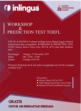 Workshop trip and trik sukses menghadapi tes toefl & mendapat sertifikat toefl, khusus alumni tahun 2018 dan 2019.